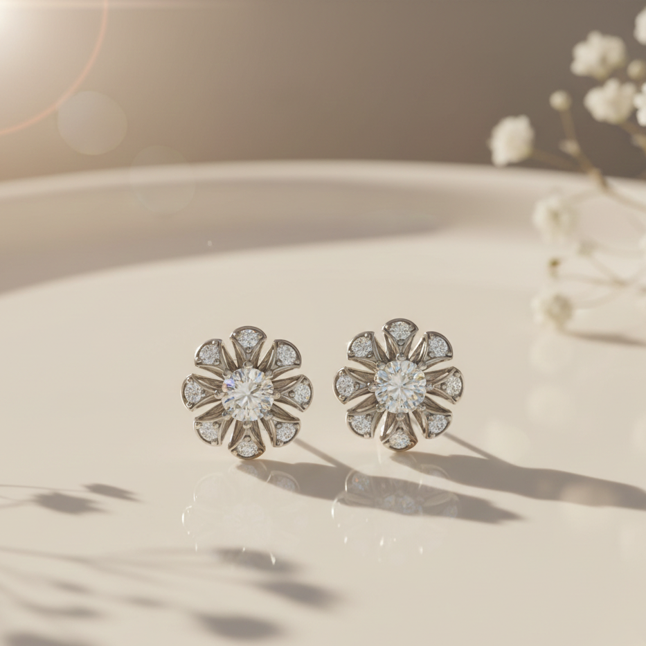 Floral Bloom Sterling Silver Earrings for Her